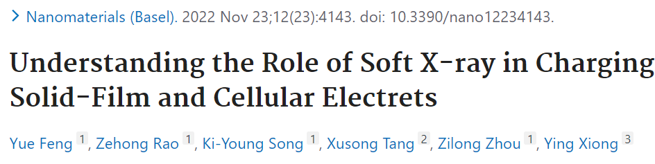 论文信息:Feng Y, Rao Z, Song K Y, et al. Understanding the Role of Soft X-ray in Charging Solid-Film and Cellular Electrets[J]. Nanomaterials, 2022, 12(23): 4143.