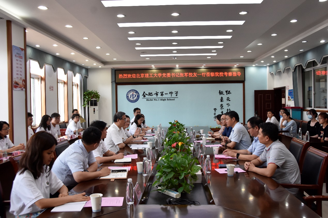 封安保介绍了合肥一中“江河湖海”的集体化办学体系和办学成果,阐释了合肥一中“全面施教、广育英才”的办学理念,肯定了北京理工大学与合肥一中在育人理念上的高度一致性,并希望能继续完善大学帮扶高中、高中助力大学的合作体系,加强合肥一中与北理工之间在人才培养方面的联系与交流。